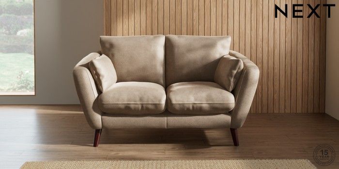 6.12.1 Buy Orlo Relaxed Sit 2 Seater Small Sofa Luxe Chenille Mid Camel Beige Retro Tapered - Dark Brown from the Next UK online shop Click here to use our accessible website