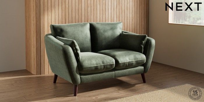 7.0.3 Buy Orlo Relaxed Sit 2 Seater Small Sofa Luxe Chenille Mid Green Retro Tapered - Dark Brown from the Next UK online shop Click here to use our accessible website