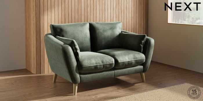 7.0.3 Buy Orlo Relaxed Sit 2 Seater Small Sofa Luxe Chenille Mid Green Retro Tapered - Light from the Next UK online shop Click here to use our accessible website