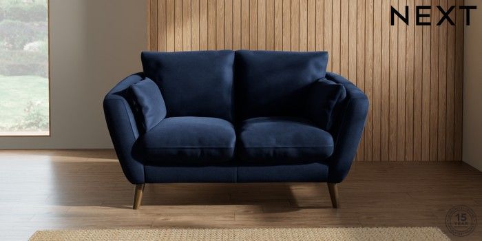 6.12.1 Buy Orlo Relaxed Sit 2 Seater Small Sofa Luxe Chenille Navy Blue Retro Tapered - Mid from the Next UK online shop Click here to use our accessible website