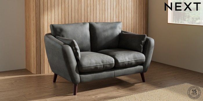 6.12.1 Buy Orlo Relaxed Sit 2 Seater Small Sofa Monza Faux Leather Easy Clean Dark Grey Retro Tapered - Dark Brown from the Next UK online shop Click here to use our accessible website