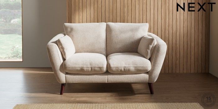 7.2.6 Buy Orlo Relaxed Sit 2 Seater Small Sofa Multi Weave Mid Natural Retro Tapered - Dark Brown from the Next UK online shop Click here to use our accessible website