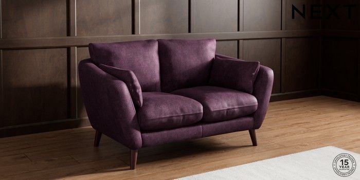 6.12.1 Buy Orlo Relaxed Sit 2 Seater Small Sofa Plush Chenille Dark Plum Purple Retro Tapered - Dark Brown from the Next UK online shop Click here to use our accessible website