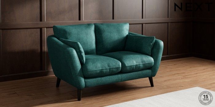 6.12.1 Buy Orlo Relaxed Sit 2 Seater Small Sofa Plush Chenille Dark Teal Green Retro Tapered - Dark from the Next UK online shop Click here to use our accessible website