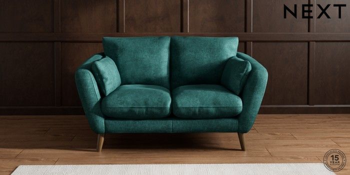 6.12.1 Buy Orlo Relaxed Sit 2 Seater Small Sofa Plush Chenille Dark Teal Green Retro Tapered - Mid from the Next UK online shop Click here to use our accessible website