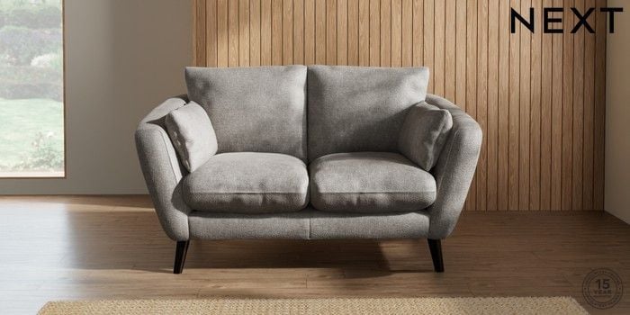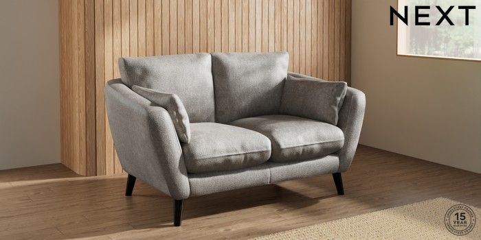 6.12.1 Buy Orlo Relaxed Sit 2 Seater Small Sofa Plush Chenille Light Grey Retro Tapered - Dark from the Next UK online shop Click here to use our accessible website