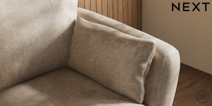 6.12.1 Buy Orlo Relaxed Sit 2 Seater Small Sofa Plush Chenille Light Natural Retro Tapered - Mid from the Next UK online shop Click here to use our accessible website