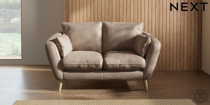 6.12.1 Buy Orlo Relaxed Sit 2 Seater Small Sofa Plush Chenille Mid Natural Retro Tapered - Light from the Next UK online shop Click here to use our accessible website