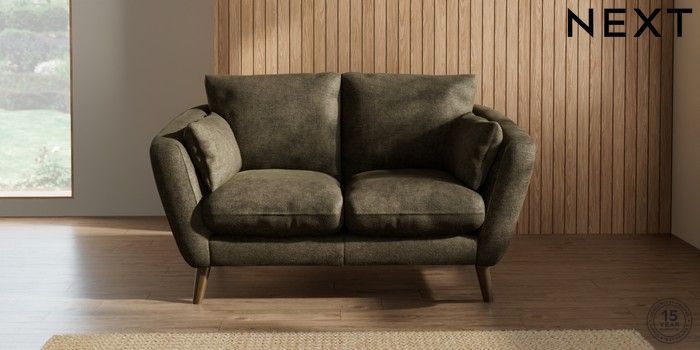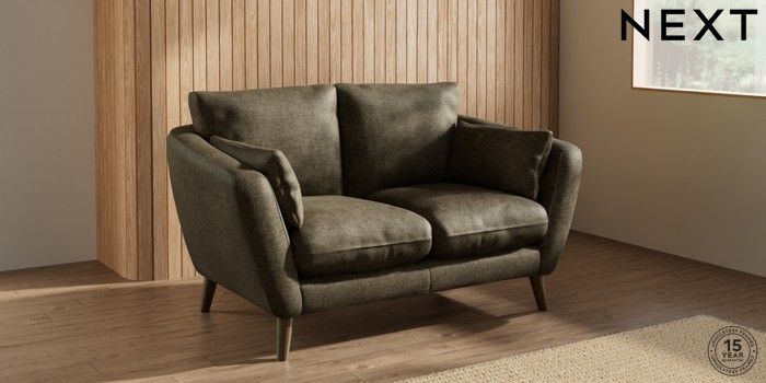 6.12.1 Buy Orlo Relaxed Sit 2 Seater Small Sofa Plush Chenille Moss Green Retro Tapered - Mid from the Next UK online shop Click here to use our accessible website