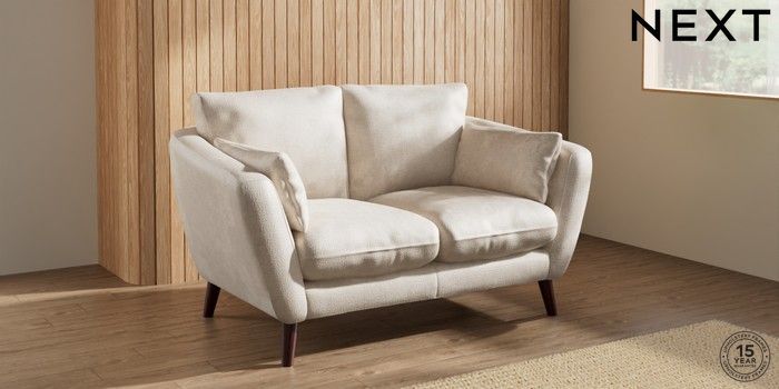6.12.1 Buy Orlo Relaxed Sit 2 Seater Small Sofa Plush Chenille Oyster Retro Tapered - Dark Brown from the Next UK online shop Click here to use our accessible website