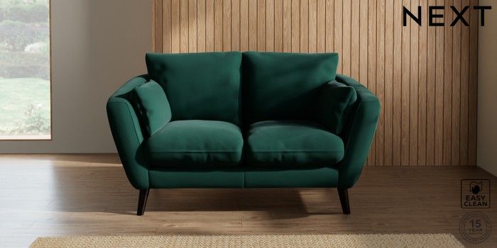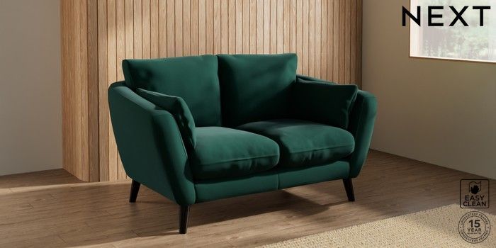 6.12.1 Buy Orlo Relaxed Sit 2 Seater Small Sofa Plush Velvet Easy Clean Bottle Green Retro Tapered - Dark from the Next UK online shop Click here to use our accessible website