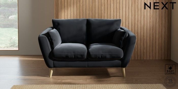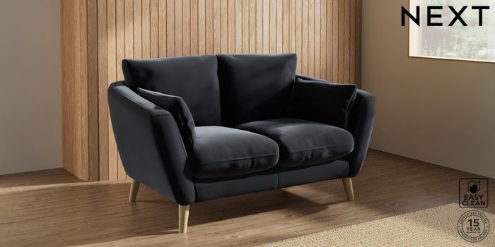 6.12.1 Buy Orlo Relaxed Sit 2 Seater Small Sofa Plush Velvet Easy Clean Charcoal Grey Retro Tapered - Light from the Next UK online shop Click here to use our accessible website