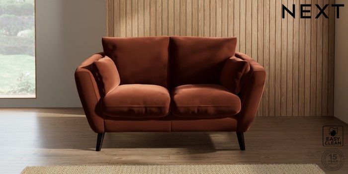 6.12.1 Buy Orlo Relaxed Sit 2 Seater Small Sofa Plush Velvet Easy Clean Ginger Orange Retro Tapered - Dark from the Next UK online shop Click here to use our accessible website