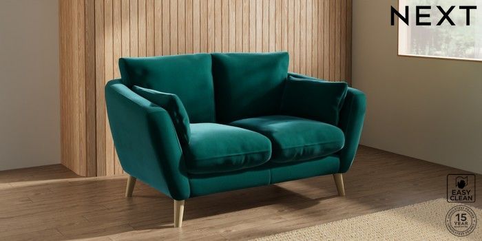 6.12.1 Buy Orlo Relaxed Sit 2 Seater Small Sofa Plush Velvet Easy Clean Juniper Green Retro Tapered - Light from the Next UK online shop Click here to use our accessible website