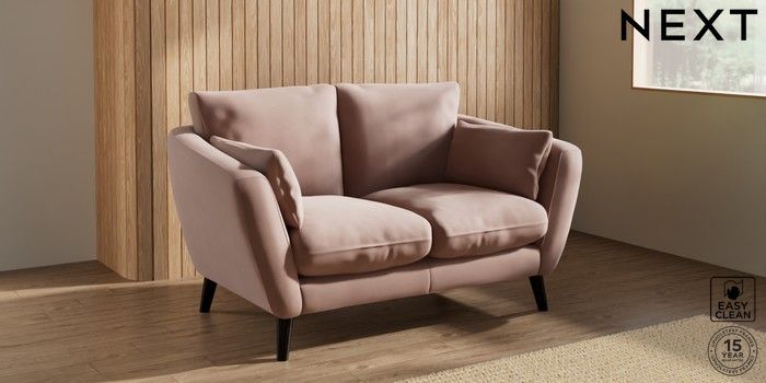 6.12.1 Buy Orlo Relaxed Sit 2 Seater Small Sofa Plush Velvet Easy Clean Mid Natural Retro Tapered - Dark from the Next UK online shop Click here to use our accessible website
