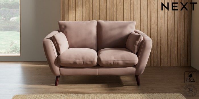 6.12.1 Buy Orlo Relaxed Sit 2 Seater Small Sofa Plush Velvet Easy Clean Mid Natural Retro Tapered - Dark Brown from the Next UK online shop Click here to use our accessible website