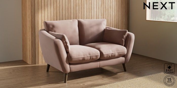 6.12.1 Buy Orlo Relaxed Sit 2 Seater Small Sofa Plush Velvet Easy Clean Mid Natural Retro Tapered - Mid from the Next UK online shop Click here to use our accessible website