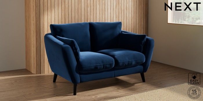 6.12.1 Buy Orlo Relaxed Sit 2 Seater Small Sofa Plush Velvet Easy Clean Navy Blue Retro Tapered - Dark from the Next UK online shop Click here to use our accessible website