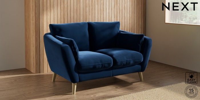 6.12.1 Buy Orlo Relaxed Sit 2 Seater Small Sofa Plush Velvet Easy Clean Navy Blue Retro Tapered - Light from the Next UK online shop Click here to use our accessible website