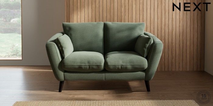 6.12.1 Buy Orlo Relaxed Sit 2 Seater Small Sofa Relaxed Linen Look Dark Green Retro Tapered - Dark from the Next UK online shop Click here to use our accessible website