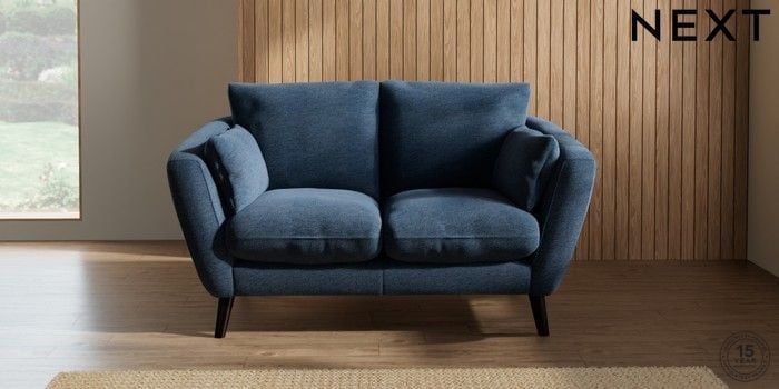 6.12.1 Buy Orlo Relaxed Sit 2 Seater Small Sofa Ripple Chenille Dark Blue Retro Tapered - Dark from the Next UK online shop Click here to use our accessible website