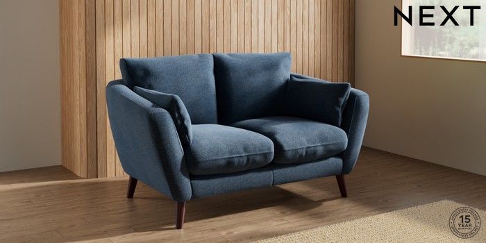 7.0.3 Buy Orlo Relaxed Sit 2 Seater Small Sofa Ripple Chenille Dark Blue Retro Tapered - Dark Brown from the Next UK online shop Click here to use our accessible website