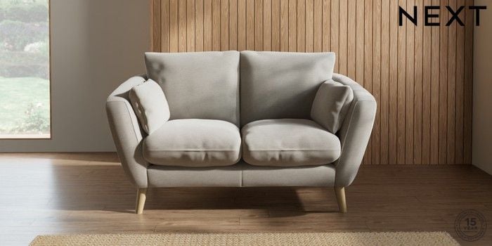 6.12.1 Buy Orlo Relaxed Sit 2 Seater Small Sofa Ripple Chenille Light Natural Retro Tapered - Light from the Next UK online shop Click here to use our accessible website