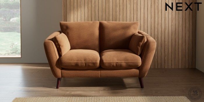 6.12.1 Buy Orlo Relaxed Sit 2 Seater Small Sofa Ripple Chenille Mid Rust Brown Retro Tapered - Dark Brown from the Next UK online shop Click here to use our accessible website