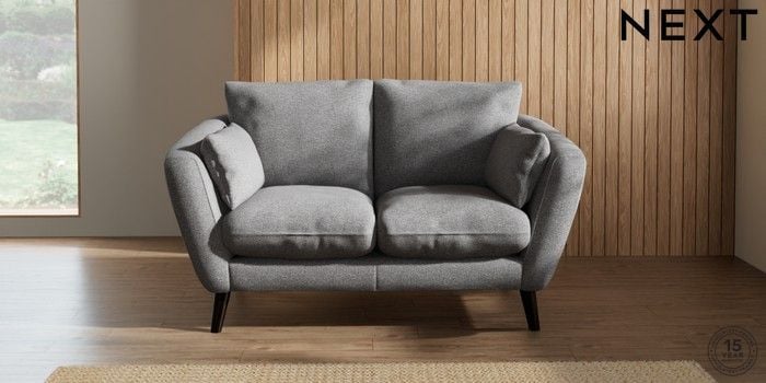 6.12.1 Buy Orlo Relaxed Sit 2 Seater Small Sofa Studio Chenille Mid Grey Retro Tapered - Dark from the Next UK online shop Click here to use our accessible website