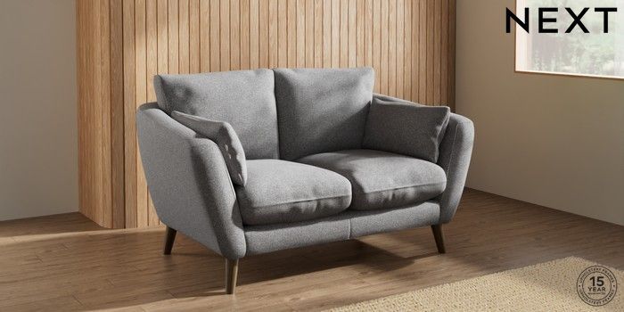 6.12.1 Buy Orlo Relaxed Sit 2 Seater Small Sofa Studio Chenille Mid Grey Retro Tapered - Mid from the Next UK online shop Click here to use our accessible website