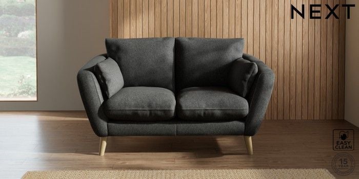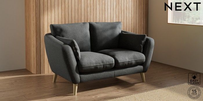 6.12.1 Buy Orlo Relaxed Sit 2 Seater Small Sofa Tweedy Blend Easy Clean Charcoal Grey Retro Tapered - Light from the Next UK online shop Click here to use our accessible website