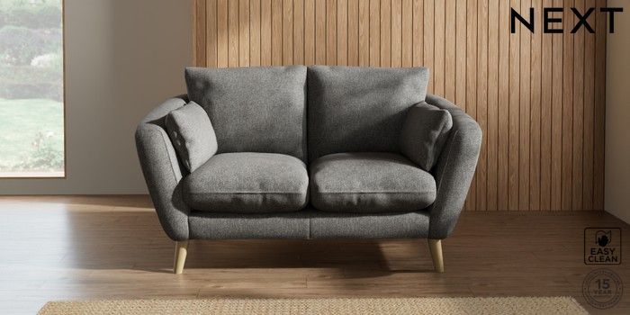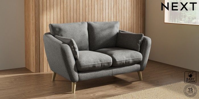 6.12.1 Buy Orlo Relaxed Sit 2 Seater Small Sofa Tweedy Blend Easy Clean Dark Grey Retro Tapered - Light from the Next UK online shop Click here to use our accessible website