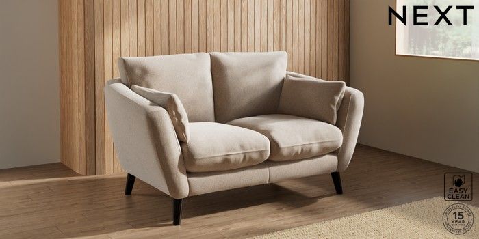 6.12.1 Buy Orlo Relaxed Sit 2 Seater Small Sofa Tweedy Blend Easy Clean Light Dove Natural Retro Tapered - Dark from the Next UK online shop Click here to use our accessible website