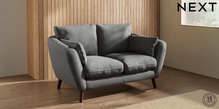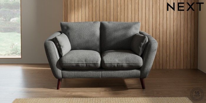 6.12.1 Buy Orlo Relaxed Sit 2 Seater Small Sofa Tweedy Chenille Dark Grey Retro Tapered - Dark Brown from the Next UK online shop Click here to use our accessible website