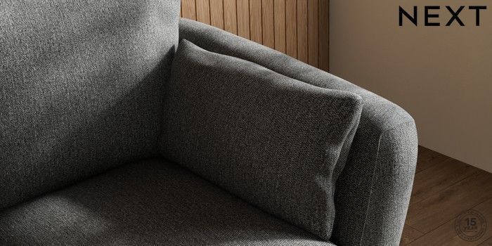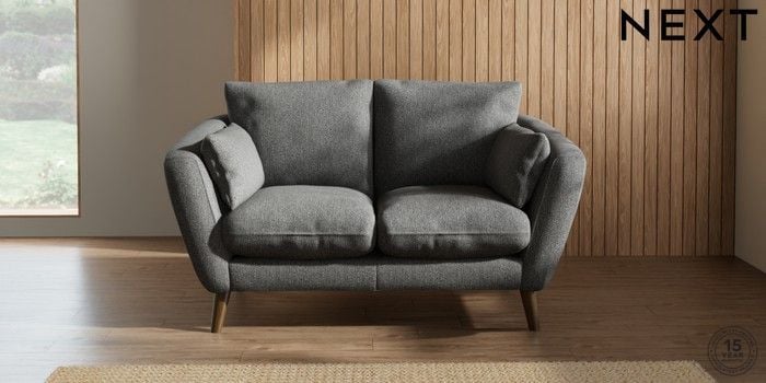 6.12.1 Buy Orlo Relaxed Sit 2 Seater Small Sofa Tweedy Chenille Dark Grey Retro Tapered - Mid from the Next UK online shop Click here to use our accessible website