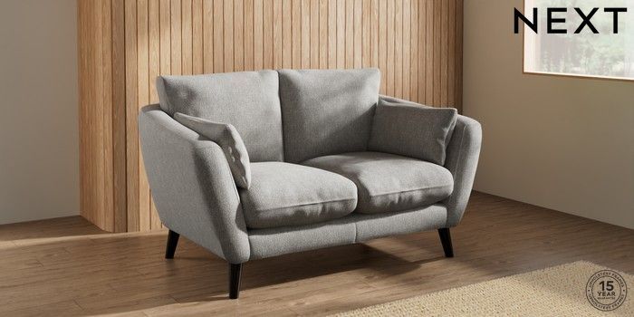 6.12.1 Buy Orlo Relaxed Sit 2 Seater Small Sofa Tweedy Chenille Mid Grey Retro Tapered - Dark from the Next UK online shop Click here to use our accessible website