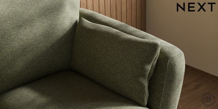 6.12.1 Buy Orlo Relaxed Sit 2 Seater Small Sofa Tweedy Chenille Mid Moss Green Retro Tapered - Mid from the Next UK online shop Click here to use our accessible website