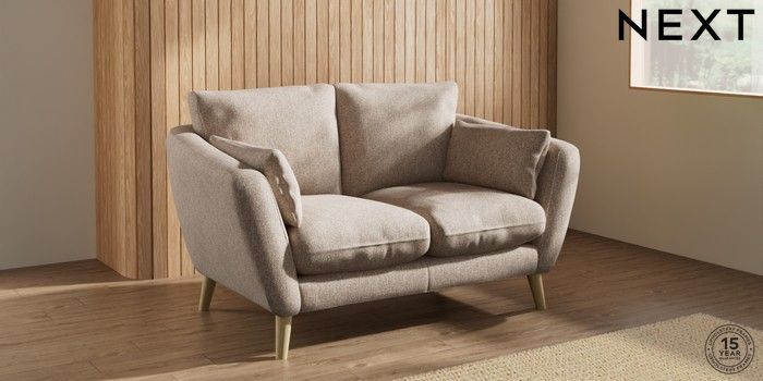 6.12.1 Buy Orlo Relaxed Sit 2 Seater Small Sofa Tweedy Chenille Mid Natural Retro Tapered - Light from the Next UK online shop Click here to use our accessible website