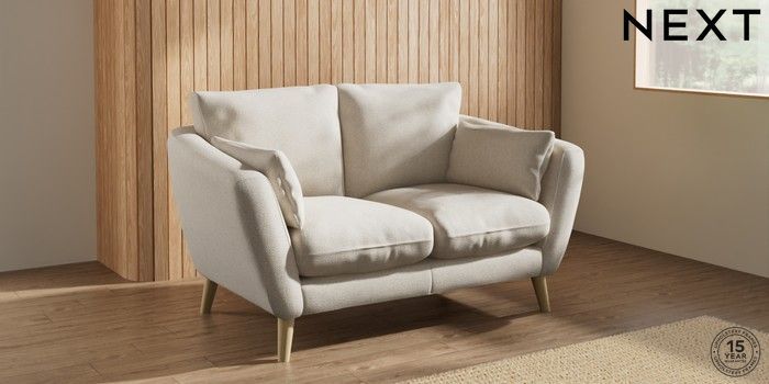 6.12.1 Buy Orlo Relaxed Sit 2 Seater Small Sofa Tweedy Chenille Oyster Retro Tapered - Light from the Next UK online shop Click here to use our accessible website