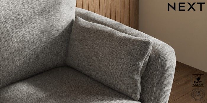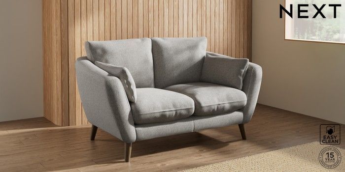 6.12.1 Buy Orlo Relaxed Sit 2 Seater Small Sofa Woven Chenille Easy Clean Light Grey Retro Tapered - Mid from the Next UK online shop Click here to use our accessible website