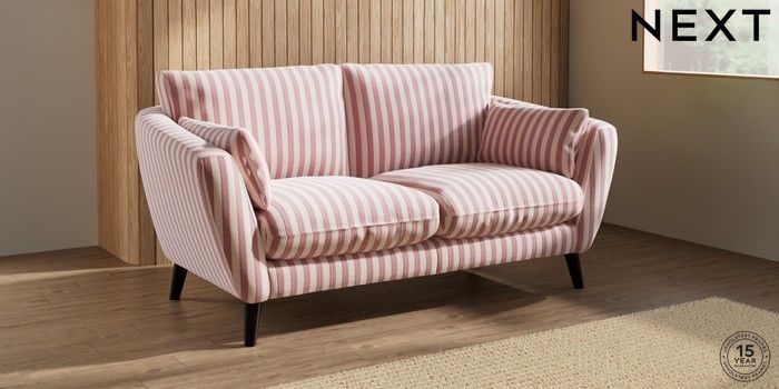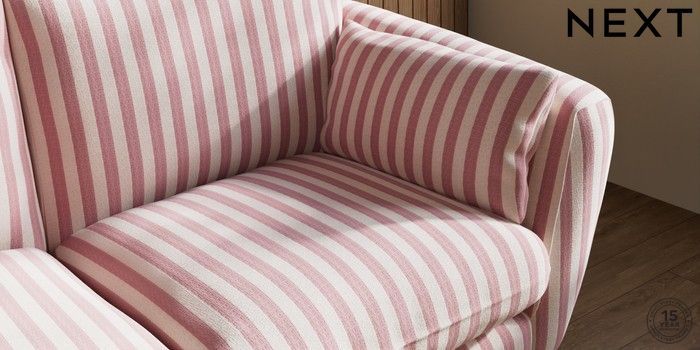 7.3.1 Buy Orlo Relaxed Sit 3 Seater Small Sofa Bold Chenille Stripe Dark Pink Retro Tapered - Dark from the Next UK online shop Click here to use our accessible website