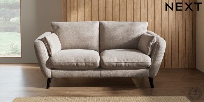 6.12.1 Buy Orlo Relaxed Sit 3 Seater Small Sofa Boucle Chenille Light Natural Retro Tapered - Dark from the Next UK online shop Click here to use our accessible website