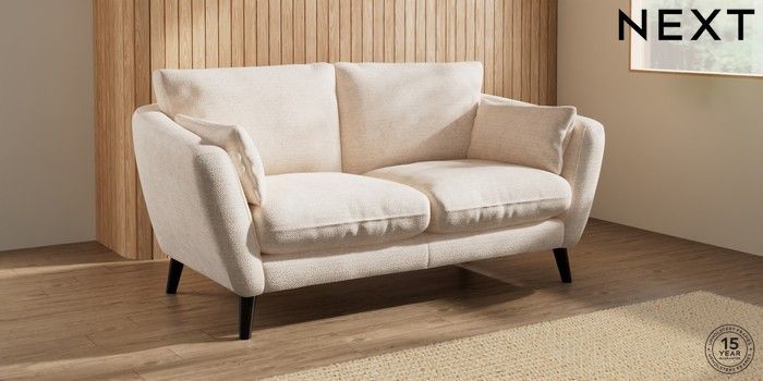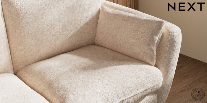 6.12.1 Buy Orlo Relaxed Sit 3 Seater Small Sofa Boucle Chenille Oyster Retro Tapered - Dark from the Next UK online shop Click here to use our accessible website