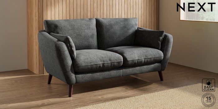 6.12.1 Buy Orlo Relaxed Sit 3 Seater Small Sofa Boucle Weave Easy Clean Charcoal Grey Retro Tapered - Dark Brown from the Next UK online shop Click here to use our accessible website