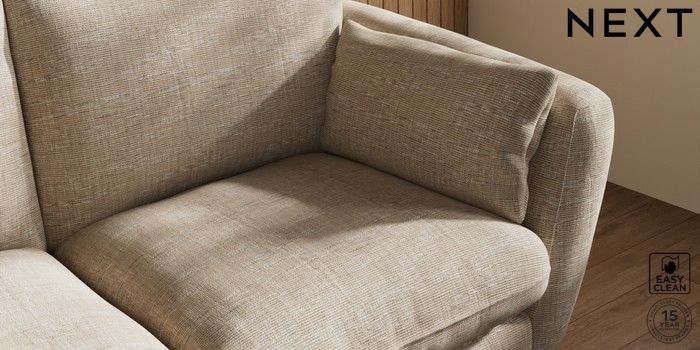6.12.1 Buy Orlo Relaxed Sit 3 Seater Small Sofa Boucle Weave Easy Clean Dark Natural Retro Tapered - Light from the Next UK online shop Click here to use our accessible website