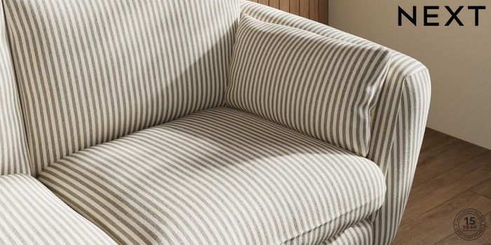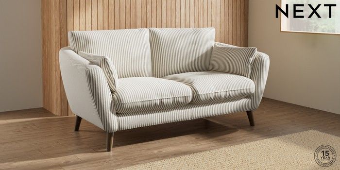 7.3.1 Buy Orlo Relaxed Sit 3 Seater Small Sofa Chenille Stripe Moss Green Retro Tapered - Mid from the Next UK online shop Click here to use our accessible website