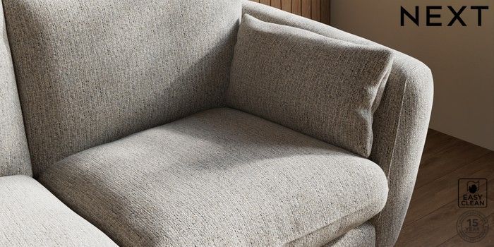 6.12.1 Buy Orlo Relaxed Sit 3 Seater Small Sofa Chunky Boucle Easy Clean Dove Retro Tapered - Dark from the Next UK online shop Click here to use our accessible website
