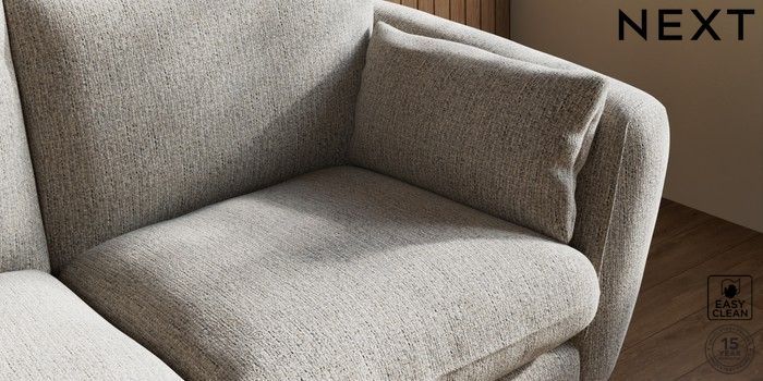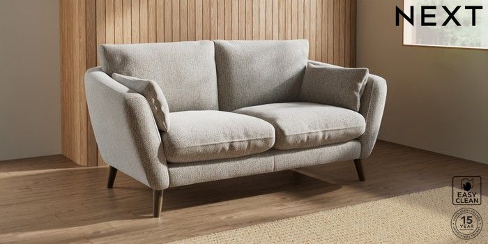 6.12.1 Buy Orlo Relaxed Sit 3 Seater Small Sofa Chunky Boucle Easy Clean Dove Retro Tapered - Mid from the Next UK online shop Click here to use our accessible website