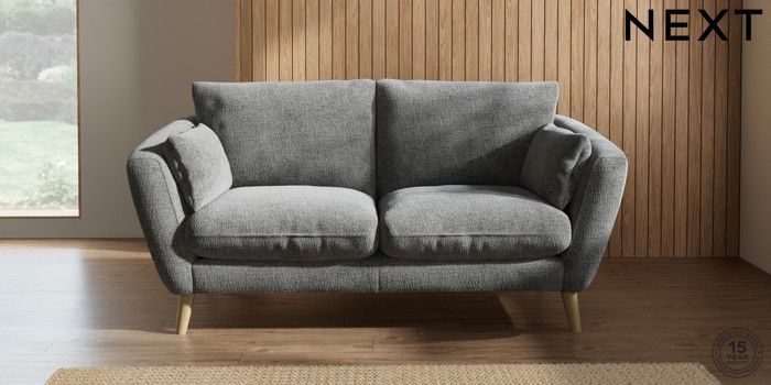 6.12.1 Buy Orlo Relaxed Sit 3 Seater Small Sofa Chunky Chenille Dark Grey Retro Tapered - Light from the Next UK online shop Click here to use our accessible website