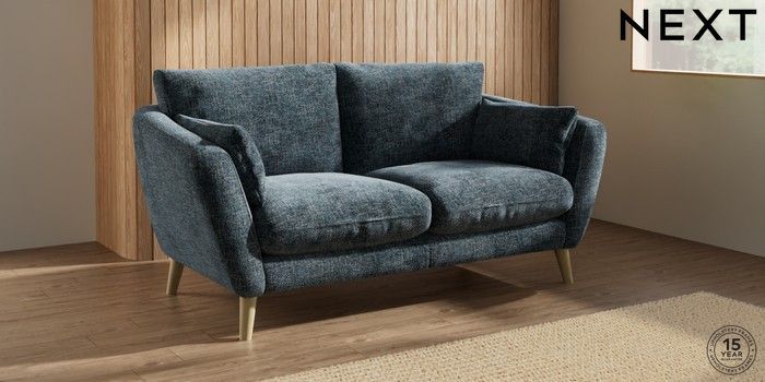 6.12.1 Buy Orlo Relaxed Sit 3 Seater Small Sofa Chunky Chenille Dark Navy Blue Retro Tapered - Light from the Next UK online shop Click here to use our accessible website